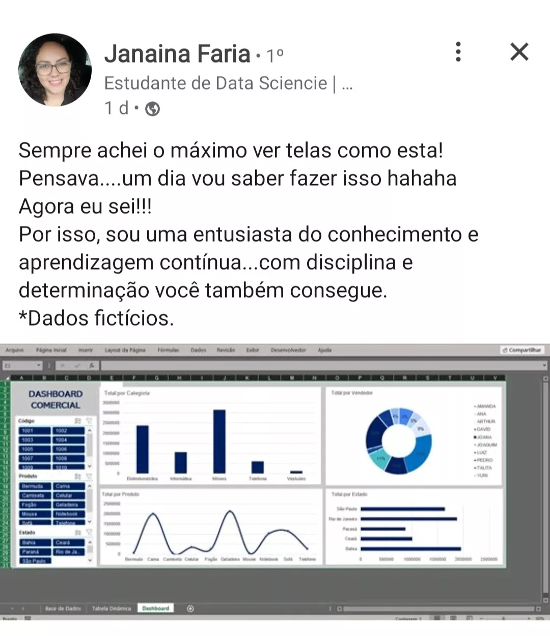 Criações de botões e interações como Filtros, Segmentação de Dados e Linha do Tempo.